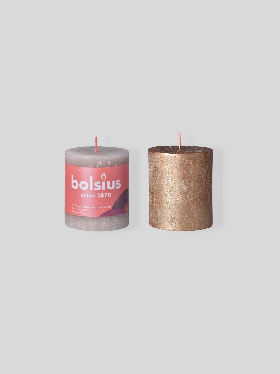 Svíčky na adventní věnce - rustikální válce Bolsius. Vyberte si barvu, která se hodí k vašemu preferovanému věnci (podnosu/nádobě).